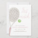 Offrez-vous un plaisir d'anniversaire avec cette invitation au tennis sur le thème rose "Premier Match" ! Conçue avec des éléments délicats d’aquarelle, une palette de couleurs roses douces et d’élégants détails de raquette, cette invitation est parfaite pour la première fête d’anniversaire de votre petite fille au tennis.