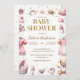 Welcome your little princess with this charming baby shower invitation featuring delicate floral crowns, baby dresses, bottles, and soft pastel elements. The soft pink and gold tones give it a sweet and elegant touch — perfect for a baby girl celebration. Fully customizable to suit your event, this design is ideal for classic, vintage, or girly-themed baby showers.