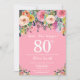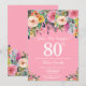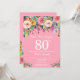 Pink Floral Surprise 80e Anniversaire Invitation pour Femmes. Fleur florale aquarelle. Arrière - plan rose. Rose, Jaune, Orange, Fleur Violette. Anniversaire adulte. 13ème 15ème 16ème 18ème 20ème 21ème 30ème 40ème 50ème 60ème 70ème 80ème 90ème 100ème, tout âge. Pour plus de personnalisation, cliquez sur le bouton "Customiser" et utilisez notre outil de conception pour modifier ce modèle.
