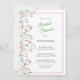 Des vignes de fleurs roses gravissent le bord de cette simple et élégante invitation à la douche nuptiale. Design aéré et simple.