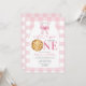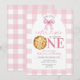 Celebrate your sweet girl’s first birthday with this charming pink “Cutie Pie” invitation featuring a soft gingham background, watercolor pie illustration, and a delicate satin bow accent.
