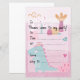 Pink Girl Dino Birthday Party Fill--In Paper Sheet