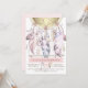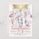 Invitation de baby shower pour attraper les filles avec belle plume pastel et perle attrape de rêve et bannière de nom sur un arrière - plan blanc avec arrière - plan d'aquarelle en option sur le côté arrière. Cette élégante invitation de baby shower de rêve tribal rose et or est facilement customisée pour votre événement en ajoutant simplement vos détails.