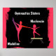 Inspire your little athletes with this eye-catching 'Gymnastics Sisters' poster. The design showcases two dynamic gymnastics silhouettes, one on a balance beam and the other in a graceful split jump, both illuminated by a captivating pink and orange gradient effect. These figures stand out against a deep black background, framed by a striking hot pink brushstroke border that adds an energetic and artistic touch. This piece is an ideal way to honor the dedication and talent of young gymnasts and celebrate the special connection between sisters who share a passion for the sport. It's a wonderful addition to any child's bedroom, playroom, or a gymnastics club's decor, bringing a splash of color and motivation.