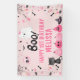 Pink Halloween Boo Ghost Happy Birthday Backdrop Bannière d'Halloween fille mignonne avec un fantôme, toiles, chat noir, rose et citrouilles, une chauve-souris et plus sur un arrière - plan rose. Cette bannière d'anniversaire joyeuse d'Halloween est idéale pour une fête d'anniversaire de fille à thème Halloween et peut être utilisée pour différents âges.