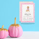Invitation de fête d'Halloween, chien halloween esthétique. Thème rose avec un chien tenant un tour de citrouille Halloween ou gâter seau. Ce n'est pas seulement un modèle, c'est votre invitation à la fête d'halloween entièrement modifiable. Adaptez sans effort chaque détail pour créer l'appel parfait pour votre rassemblement unique.