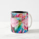 Elevate your coffee moments with this stunning mug featuring glowing pink crystal hearts set against a vibrant abstract background. A perfect blend of modern art and romantic aesthetics, making it an ideal gift or a stylish addition to your collection.