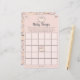 Ce jeu de Baby shower d'automne rose pastel s'appelle "Baby Bingo". Le design : Sur le devant, une carte de jeu BINGO avec des instructions. Petit petit citrouille en haut et au centre "carré gratuit" de la carte Bingo. Sur le dos, un motif dessiné à la main à l'encre noire, avec de petits citrouilles, des étoiles et du maïs-bonbons, le tout contre un élégant arrière - plan rose vif. Comment jouer : Chaque invité reçoit une carte de Bingo. Avant que Maman-to-Be ouvre ses cadeaux, chaque invité remplit les carrés de cadeaux qu'il croit que Maman-to-Be recevra. Au moment où elle déballe chaque cadeau, les invités croisent cet objet cadeau sur leur carte. Le premier invité à obtenir 5 de suite gagne.