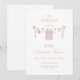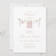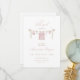 A soft and feminine watercolor baby shower invitation featuring pink baby clothes hanging on a twine clothesline. This editable design is perfect for celebrating a sweet little girl with a warm, elegant touch. Ideal for modern or vintage-style baby showers.