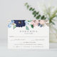 Elégante aquarelle fleurie et feuillage dans les tons tendance de vert, bleu marine, taupe, rose roux et bleu roux avec support bleu marine solide, cartes RSVP mariage avec choix de repas. Vous pouvez customiser le style, la couleur et la taille de la police de texte.