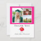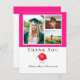 Pink Modern Floral Photo Collage Graduation Carte de remerciements, avec un cadre sur un collage de 3 de vos photos.