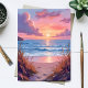 Pink Ocean Sunset Beach Watercolor Painting Card