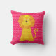 Joli, girly, coloré, audacieux, moderne décrit ce design à motifs projeter un oreiller de rayures de chevron rose et rose profond avec un lion rayé doré portant une couronne d'or de chaque côté!