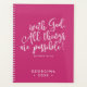 Un planificateur chrétien typographique moderne avec le verset de la Bible Matthieu 19:26 Avec Dieu toutes les choses sont possibles" en caractères blancs de script blanc, personnalisé avec votre nom et année en bas. La couleur arrière - plan est en rose vif, qui peut être édité.