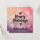 Cet élégant design intègre un arrière - plan à dégradé rose et violet et des points bruns et blancs. Message Black Happy Holidays, un mistletoe, un coeur noir et quelques points noirs.