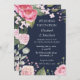 Celebrate your special day with elegance using this wedding invitation featuring delicate pink roses set against a sophisticated blue background. The white lettering creates a beautiful contrast, making all the details clear and easy to read, while the floral design adds a romantic and timeless touch.. . .
