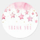 Les étoiles roses merci l'autocollant amusant. Des étoiles accrochées à des nuages lustrés et roses clairs.