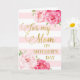 Carte de fête des mères pour maman avec rayures roses rousses, fleurs d'aquarelle rose et vers sentimental.