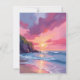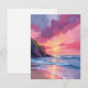 Pink Sunset Ocean Beach Wales Watercolor Card