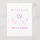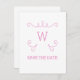 Monogramme Whimsical Flourish moderne et simple Enregistrer la carte postale Date avec un élégant motif tourbillon en rose. Facile à customiser, il suffit d'ajouter vos informations initiales et mariages dans les champs de texte fournis. Cliquez sur "Customiser" pour trouver d'autres options de personnalisation.