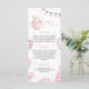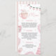Elegant pink winter baby shower menu card featuring soft pastel illustrations of a hot cocoa mug, holiday lights, snowflakes, candy canes, and festive greenery. Perfect for “Baby It’s Cold Outside” themes, winter wonderland baby showers, holiday parties, brunches, or girl baby celebrations. A beautiful printable menu to display on tables and enhance your event décor.