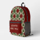 Montrez votre amour pour l'hiver avec ce sac à dos de pin. Avec des couleurs douillettes de vacances de vert, rouge, marron et bronzage. Les diamants rouges peuvent être customisés en changeant la couleur arrière - plan. Personnalisez en modifiant ou en supprimant le texte. J'ai créé ce motif à partir d'une image dans ma peinture acrylique originale.