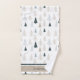 Personnalisez une serviette d'hôtel avec un nom ou un autre texte et ajoutez du brio à votre salle de bain à thème rustique avec cette serviette imprimée d'un motif aux formes primitives de pins. Choisissez le jeu ou sépare dans le menu déroulant. Créé dans les tons de terre de tan, bleu clair gris et gris ardoise foncé sur un blanc arrière - plan et une bordure tan et des accents gris foncé. Voir d'autres éléments de coordination dans cette collection de design sur Zazzle.