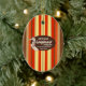Les planches de surf vintages des années 60 et 70 étaient tout autour des rayures et des bois incrustés. Notre décoration rappelle les planches de surf qui étaient si populaires sur la Rive Nord d'Oahu, à Hawaï. Nous avons combiné du bois de koa et ajouté des bandes de compétition et notre logo North Shore Longboard Surfing Club. Pour Noël, notre salutation est "Mele Kalikimaka", mais ces ornements font de grands cadeaux toute l'année, customisez-les avec votre propre message ! Ces dessins viennent de plusieurs couleurs.