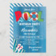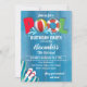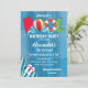 Un design de fête d'anniversaire de piscine d'été avec arrière - plan en bois bleu et graphismes de piscine avec un dos assorti. Pour accéder aux outils de montage avancés, accédez à Personnaliser, puis cliquez sur le lien "customiser plus loin".