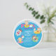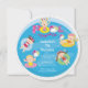 Joli cercle circulaire mourir coupe été piscine invitation avec une piscine avec des filles flottant sur des flotteurs de piscine avec des boules de plage. Moderne et amusant Invitation pour enfants pour votre fête d'anniversaire de fille.
