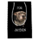 Ce sac cadeau personnalisé est parfait pour toutes les occasions. Il montre une adorable photo de notre Pitbull de Nez Bleu, super affectueux, appelé Sarge. Sarge vous regarde avec son petit visage mignon et portant son sweat - shirt à capuche préféré qui le garde au chaud en hiver. L'occasion et le nom du destinataire du cadeau sont faciles à customiser.