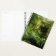 Photo pittoresque de la forêt de fougères et leurs frondes et de longues troncs, vert et luxuriant avec le soleil brillant à travers la canopée des plantes. Il y a du texte personnalisé pour certains mots ainsi que pour l'année du planificateur.