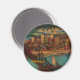 Carte postale vintage montrant le centre-ville de Pittsburgh au clair de lune en 1931 avec vue sur la rivière Monongahela, un pont ferroviaire le traversant et les bâtiments du centre-ville illuminés la nuit. Réimprimé sur cet aimant.
