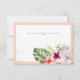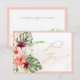 PixDezines carte de remerciement plate. Avec une floraison tropicale aquarelle pêche clair et feuillage d'hibiscus, de plumeria, de monstera et de palmiers, arrangement botanique magnifique.