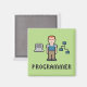 Image de Pixel représentant un programmeur, un ordinateur et un fluxogramme.