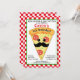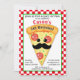 Prenez une tranche et profitez d'une soirée d'anniversaire à la pizza géniale avec cette invitation! Dispose d'une mignonne tranche de pizza moustache sur un arrière - plan à damiers rouge et blanc. Mignonne !