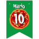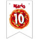 Pizza personnalisée Fête de l'anniversaire drapeaux de bunting. Personnalisez avec votre nom et votre âge. Conception amusante pour la célébration des enfants. Grande illustration de pizza ronde avec pepperoni, olives, tomate, fromage et champignons. Un design italien pour les amateurs de pizzas. Couleurs de drapeau italien personnalisables.
