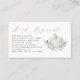 Ajoutez cette carte de demande de réservation personnalisable à votre baby shower. Il présente des illustrations de couleurs de watecolor d'un citrouille blanc, des feuilles d'eucalyptus et des accents de verdure. Personnalisez cette carte de demande de livre d'automne en ajoutant vos propres détails. Cette carte de demande de réservation de citrouille est parfaite pour les baby showers d'automne.