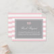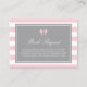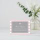 Jolie carte de demande de carnet de thème stripe et bow. Il est doté d'un motif à rayures roses et blanches avec un accent de ruban. Demandez aux clients d'apporter un livre au lieu d'une carte. Personnalisez en ajoutant nom, événement et date. Ce livre rose et gris pour carte bébé est parfait pour It's a Girl baby showers.