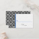 Cette carte de place ou d'escorte damassée bleue, noire et blanche correspond au faire-part de mariage ci-dessous. S'il y a d'autres articles correspondants dont vous avez besoin, envoyez un courriel à niteowlstudio@gmail.com.