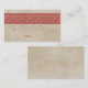 Simple et élégante Rustic Lace Mariage de la carte de place avec un look arrière - plan en papier texturé vintage et une bordure motif en dentelle douce et dainty en rouge foncé. Un espace est prévu sur ce produit pour écrire les noms et les numéros de table où chacun de vos invités sera assis. Cliquez sur le bouton "Customiser" pour trouver d'autres options de personnalisation.