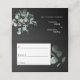 Ce design moderne de carte de place mariage noir verdoyant propose un mélange facile et des styles coordonnés en noir et blanc avec des éléments de verdure délicats ajoutant une floraison gracieuse autour d'une simple typographie sophistiquée et un joli script de calligraphie minimale. L'eucalyptus à l'aquarelle et d'autres feuilles botaniques s'arment magnifiquement tout le long, avec un teint émeraude foncé qui s'estompe dans un effet sombre pour un vert menthe clair - pour ajouter juste assez d'une touche classe de nature rustique à un décor contemporain neutre. Cette magnifique collection créerait un air d'élégance poli pour votre mariage de rêve formel ou décontracté ou autre événement spécial. Comme pour tous nos designs, si vous avez des questions ou des demandes spéciales, contactez-nous.