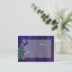 La réception de mariage à thème Peacock propose des cartes avec des graphiques d'un riche aspect satiné violet, avec des accents argentés et un paon coloré décorant le devant gauche. Le texte en blanc peut être personnalisé pour lire ce que vous voulez. Ecrivez à la main le nom et le numéro de table de chaque invité sur les cartes. Des produits mariages correspondants sont disponibles.