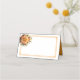 Cette carte de nom pliée est présentée en blanc de base avec une belle gerbe florale de couleur orange.