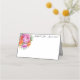 Cette carte de place de nom plié est montré en blanc de base avec un joli accent rose et orange de couleur pivoine floral mélange et a des exemples de noms personnalisés. Customisez cet élément et modifiez les noms et la date à ce dont vous avez besoin avec ce modèle.