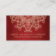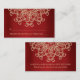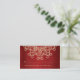 Un magnifique grenat à bijoux et un mariage rouge et or rubis ou toute carte de place de table occasion spéciale avec un sari ornemental d'inspiration indienne exotique comme un motif avec un lotus et un coucher de soleil fleuri. Cette belle et élégante carte de séjour moderne haut de gamme et de luxe de style indien est parfaite pour toute occasion formelle avec une soirée orientale indonésienne marocaine arabe ou le thème aladdin. Design © Chrissy H. Studios, LLC. Tous droits réservés.