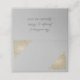 Elégante carte pliée en gris avec des accents décoratifs en dentelle dorée, à l'avant et une feuille d'or solide à l'intérieur. Personnalisez le texte personnalisé, au verso de la carte, pour lire ce que vous voulez. Personnalisez l'avant de chaque carte, à la main, pour votre réception de mariage.