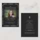 Cadre argenté classique avec un arrière - plan noir Orthodoxe chrétienne photo funérailles / carte de prière mémoriale. Cette carte customisée peut être remise à la liturgie funéraire ou envoyée en hommage spécial à ceux qui n'ont pas pu y assister. Personnalisez avec tous vos détails et préférences, y compris le texte, la police / taille / emplacement. La photo n'est à titre d'illustration qu'à remplacer. N'hésitez pas à nous contacter pour toute question. Merci!