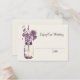 Parfait pour un mariage de style champêtre ou peut-être que vous aimez juste Mason Jars! Vieux Mason Jar vintage accroché à un crochet avec des fleurs sauvages de la campagne. Un Arrière - plan à la crème avec un bocal Mason rempli de fleurs sauvages aux fleurs mauves. Si vous avez des questions sur ce design ou si vous voulez un changement de couleur, envoyez-moi un courriel à paula@labellarue.com Vérifiez également que les cartes INVITATION, RÉCEPTION et RSVP correspondent!