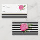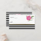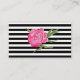 Jolie escorte de réception / carte de place faite en blanc, avec de jolis graphismes aquarelle d'une pivoine rose, dans le coin supérieur droit et rayures noir et blanc, à travers le fond. Tout le texte est prêt à être personnalisé, pour répondre à vos besoins mariages. Des produits mariages correspondants sont disponibles.